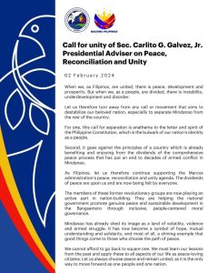 Ang Opisina ni MP Rasol Mitmug Jr. ay naniniwalang sa panahong ito ay mas kinakaikailangan nating magkaisa upang mabigyan ng solusyon at mapunan ang mga suliranin ng rehiyon at ng buong bansa. Walang pagkakaisa kung walang kapayapaan.