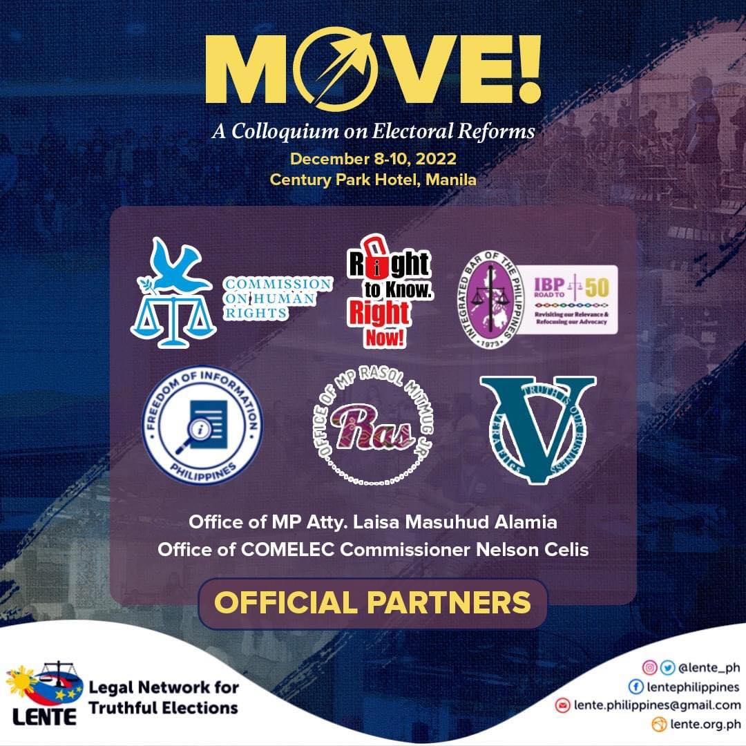 The Legal Network for Truthful Elections presents MOVE! A Colloquium on Electoral Reforms with the theme “Maximizing Opportunities and Valuing Elections through Electoral Reforms”.