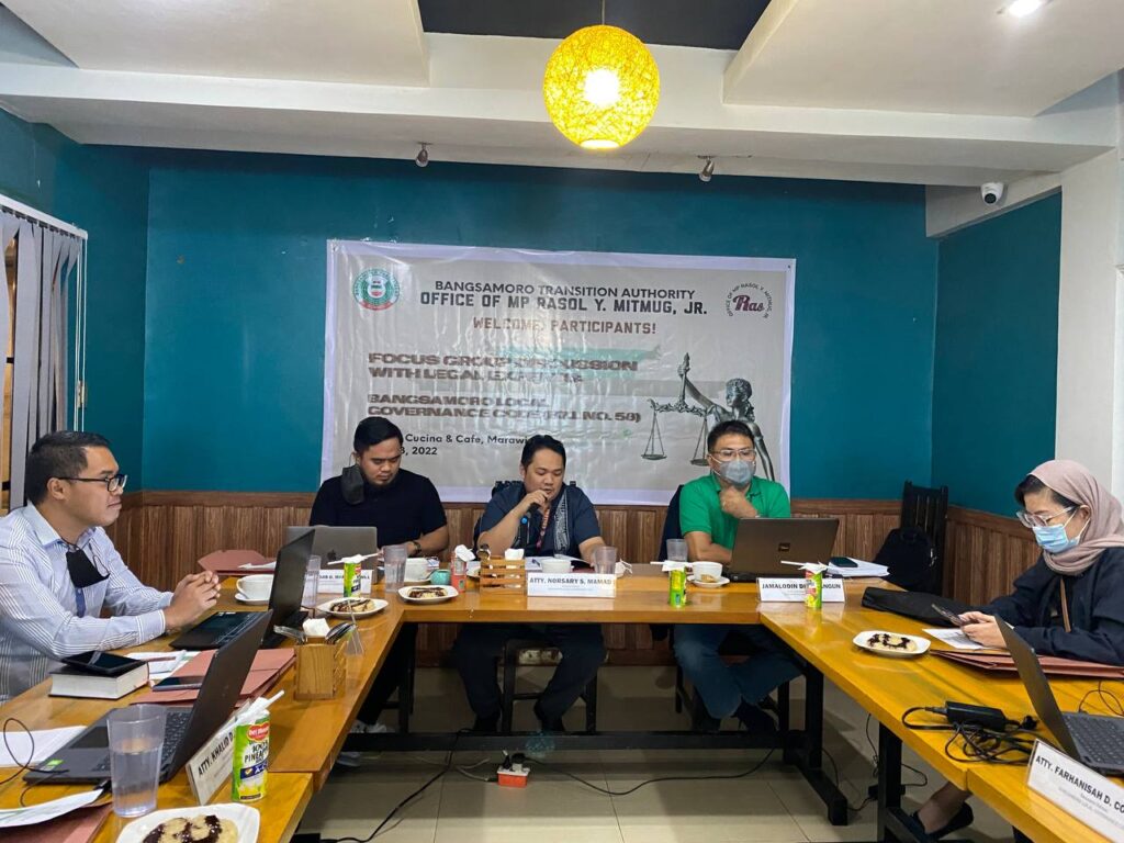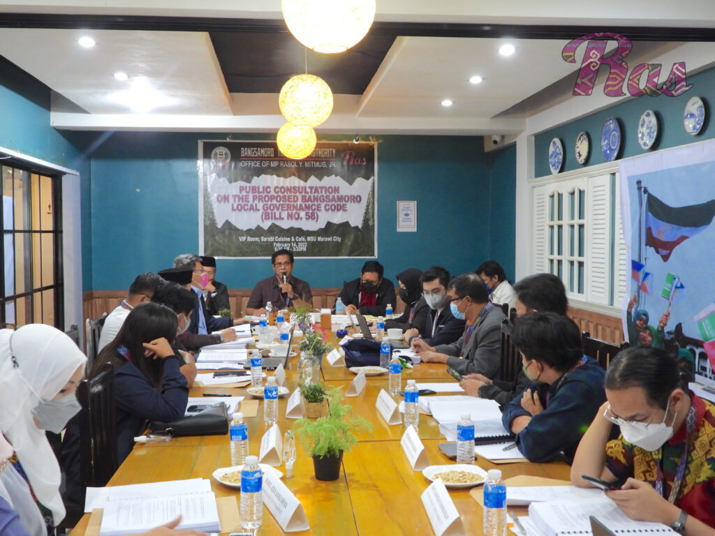 MARAWI CITY – The Office of Deputy Minority Floor Leader of the Bangsamoro Parliament, Atty. Rasol Y. Mitmug, Jr., conducted a focus group discussion on BTA Bill No. 58, otherwise known as the Bangsamoro Local Governance Code at Sarabi Cuisine and Café, MSU-Main Campus, Marawi City, last February 14.